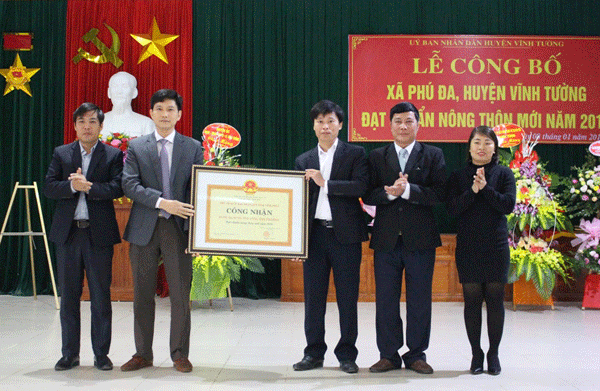 Lãnh đạo huyện Vĩnh Tường trao Bằng công nhận chuẩn NTM cho xã Phú Đa.