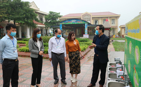Tổ kiểm tra HĐND huyện Vĩnh Tường khảo sát công tác phòng, chống dịch Covid-19 tại trường Mầm non xã Nghĩa Hưng.