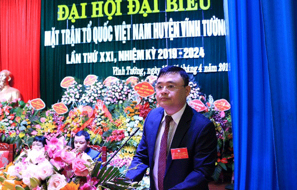 Sáng 11/4, Mặt trận tổ quốc Việt Nam huyện Vĩnh Tường, Vĩnh Phúc tổ chức đại hội đại biểu khóa XXI, nhiệm kỳ 2019-2024. Tới dự có  các đồng chí Nguyễn Tuấn Khanh- Uỷ viên Thường vụ Tỉnh ủy Vĩnh Phúc, Ủy viên UB TW MTTQ VN, Chủ tịch UBMTTQ VN tỉnh Vĩnh Phúc; lãnh đạo các Ban Tổ chức; Chủ tịch UB MTTQ VN các huyện, thị xã, thành phố thuộc tỉnh; đồng chí Lê Minh Thịnh- Tỉnh uỷ viên, Bí thư Huyện ủy, Chủ tịch HĐND huyện Vĩnh tường; các cơ quan, ban, ngành, đoàn thể của huyện, đại diện Mẹ VNAH, đối tượng chính sách, lãnh đạo Đảng ủy các xã, thị trấn trong huyện và 155 đại biểu chính thức, tiêu biểu đại diện cho các tầng lớp nhân dân trong huyện.