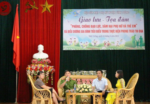 Hội LHPN huyện Vĩnh Tường - Vĩnh Phúc vừa tổ chức giao lưu - tọa đàm “phòng chống bạo lực, xâm hại phụ nữ và trẻ em ”, tuyên dương gia đình tiêu biểu trong phong trào thi đua nhân kỷ niệm ngày Gia đình Việt Nam 28/6.