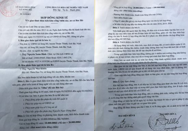 Hợp đồng kinh tế của UBND xã Song Hồ với ông Nguyễn Ngọc Đông.