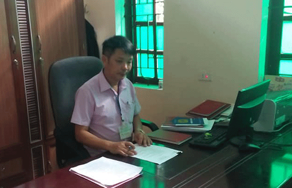 Chủ tịch UBND xã Nguyễn Ánh Sơn đang làm việc với phóng viên